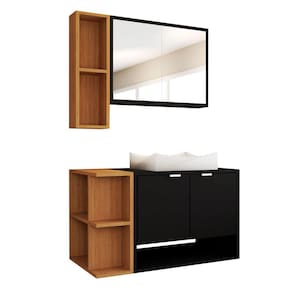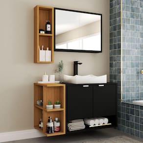 O(a) Armário de Banheiro Gravatá 4 Portas Preto Fosco/Naturalle - Loja é produzido em MDP na escala de brilho Semi-Brilho, e possui um grau de dificuldade de montagem: Médio.