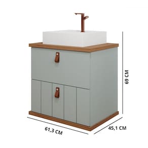 O(a) Armário de Banheiro Milano 60 Cm 1 Porta e 1 Gaveta 100% Mdf Pistache/Freijó - Mgm Móveis  é produzido em 100% MDF na escala de brilho Semi-Brilho, e possui um grau de dificuldade de montagem: Médio.