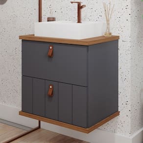 O(a) Armário de Banheiro Milano 60 Cm 1 Porta e 1 Gaveta 100% Mdf Titanium/Freijó - Mgm Móveis  é produzido em 100% MDF na escala de brilho Semi-Brilho, e possui um grau de dificuldade de montagem: Médio.