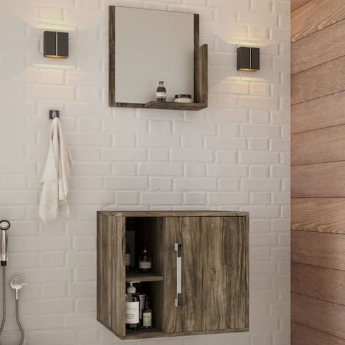 - Acompanha: Armário de Banheiro + Kit Ferragens + Manual de Montagem