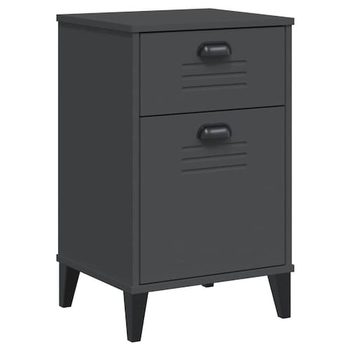 - Cor: antracite- - Forma: retangular- - Material: madeira projetada- - Interior/externo: somente interno- - Número de portas: 1- - Tampa incluída: Não- - Sala: quarto- - Dimensões: 15,7 x 13,8 x 25,6 polegadas (L x C x A) - - Altura da superfície: 0,6 polegadas- - Altura da perna: 3,9 polegadas- - Peso: 20,55 libras- - Marca: vidaxL- - A entrega contém: 1 armário de cabeceira, dispositivo de fixação na parede- - Montagem necessária: Sim- - SKU: 374916- - EAN: 8721012310155-
