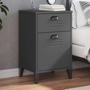 -?Design elegante?: Armário de cabeceira com estilo industrial, cor cinza antracite, perfeito para quartos ou salas de estar
