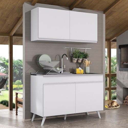 A Cozinha Compacta 2 peças com Armário e Balcão MP2141 Multimóveis tem um excelente custo benefício e um amplo espaço interno. Produzida em MDP com acabamento acetinado (cerca de 20% de brilho), que garante maior durabilidade e resistência, possui amplo espaço interno, pés retrô em polipropileno, que deixam o ambiente mais estiloso, puxadores em ABS e tampo em MDP 15mm com pintura de alta resistência. Os módulos são individuais e você pode montar da maneira que se adaptar melhor ao seu ambiente. O balcão possui tampo removível (compatível com pia de 120 cm). Para deixar sua cozinha mais bonita e organizada, possui compartimento especial para utensílios mais altos. *Não acompanha pia de inox.