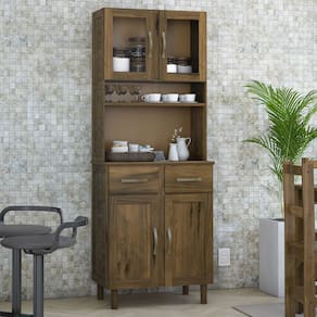 O Armário de Cozinha 04 Portas 02 Gavetas Madeira Maçica Pinus Paris da Lanes Móveis apresenta um encantador design rústico. Sua estrutura é confeccionada em madeira de pinus reflorestada, preservando as características naturais da madeira, assegurando excelente conservação e durabilidade. As gavetas são equipadas com corrediças metálicas, 02 portas com vidro e o puxador de cor bronze acrescentam um toque especial ao produto. Acabamento da Prateleira: Verniz Escala de Brilho da Prateleira: Brilhante Acabamento da Gaveta: Verniz Acabamento da Porta: Verniz Escala de Brilho da Porta: Brilhante Acabamento dos Pés: PU Ambiente Principal: Cozinha codigo_ean: 7900288067838 Complexidade da Montagem: Média: pode ser montado por mais de uma pessoa e/ou necessite de maior conhecimento para montagem Cor: Castanho Cor do Produto: Castanho Escala de Brilho: Brilhante Gaveta com Chave: Não Itens Inclusos: 1 Armário + Kit Ferragens + Manual de Montagem Linha ou Coleção: Paris Manual de Montagem e Instalação: https://product-hub-prd.madeiramadeira.com.br/978142/documents/866da267-7284-4636-80bd-26661e0615d32684832263317394672438708.pdf Marca: Lanes Móveis Material da Dobradiça/Corrediça da Porta: Metálica Material da Gaveta: Madeira Maciça Material da Porta: Madeira Maciça Material da Prateleira: Madeira Maciça Material dos Pés: Madeira Maciça Necessita Montagem: Sim O Balcão Acompanha Pia: Não Origem do Produto: Nacional Peso: 29 kg Peso Máximo por Gaveta: 4 kg Peso Máximo por Prateleira: 3 kg Possui Espelho: Não Possui Possui Pés: 04 Possui Portas: Sim Possui Prateleiras: Sim Possui Rodízio: Não Possui Vidro: Sim Produto Montado: Sim Recomendações de Uso, Manutenção e Limpeza: Deve-se tirar a poeira cuidadosamente com um pano seco ou espanador, para que não haja o perigo do pó sob a pressão e movimento do pano arranhar a superfície. Não usar produtos abrasivos e esponjas duras e ásperas. Sapatas Niveladoras: Não Sistema de Montagem: Parafusos Suporta Até (kg): 30 kg Tipo de Corrediça da Gaveta: Simples Tipo de Dobradiça/Corrediça da Porta: Simples Tipo de Madeira Maciça: Pinus Tipo de Madeira Maciça da Gaveta: Pinus Tipo de Madeira Maciça da Porta: Pinus Tipo de Madeira Maciça da Prateleira: Pinus Tipo de Madeira Maciça dos Pés: Pinus Tipo de Puxador da Gaveta: Externo Tipo de Puxador da Porta: Externo