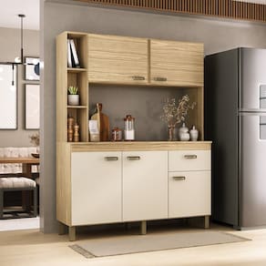 Com um layout inteligente de 5 portas e 1 gaveta, este armário é a solução definitiva para organizar seus eletrodomésticos, louças e mantimentos com total praticidade.