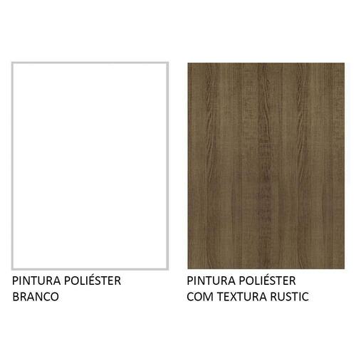 Para completar, o acabamento da estrutura é branco e o das portas e frentes é no padrão amadeirado Rustic. Feito em Pintura Poliéster ecológica, que consiste na aplicação de 7 camadas de proteção resistentes a álcool, água e calor.