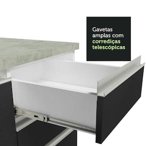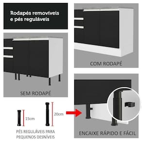 Se você busca tornar sua cozinha um lugar mais funcional e acolhedor, o Armário de Cozinha Completa da linha Glamy da Madesa é uma escolha excelente.Com foco na qualidade e durabilidade, esse móvel apresenta puxadores de alumínio, portas com fechamento suave, gavetas com corrediças telescópicas, pés ajustáveis em PVC e rodapé em MDP, que pode ser facilmente removido.A distribuição inteligente dos módulos na cozinha oferece amplo espaço para armazenar alimentos e utensílios, criando uma cozinha planejada para sua casa.Outra grande vantagem desse móvel é a possibilidade de instalar uma pia de pedra ou inox no balcão, com medidas de 120 x 52 cm.Para completar, o acabamento combina os preto e branco. É feito com 7 camadas de Pintura Poliéster, proporcionando uma excelente proteção contra água e calor.Medidas totais:- 225 cm de altura- 260 cm de largura- 52 cm nos balcões e 31 cm nos aéreosItens inclusos:- Um (1) Aéreo de 120 cm com duas (2) portas- Um (1) Balcão de 120 cm com duas (2) portas e três (3) gavetas (Não acompanha tampo.)- Um (1) Aéreo de 80 cm com uma (1) porta basculante- Um (1) Aéreo de 60 cm com uma (1) porta- Um (1) Balcão de 60 cm com uma (1) porta e tampoCódigo do produto: GRGL26000573Obs.:- Imagens meramente ilustrativas, os eletros, o tampo da pia, a torneira e a decoração não acompanham o produto- A Madesa não disponibiliza serviço de montagem, o produto segue com manual e todas as ferragens necessárias para a instalação1 O produto vem montado? Se não, vocês realizam a montagem?R.: A Madesa não disponibiliza serviço de montagem. Todos os produtos seguem com manual de instalação e as ferragens necessárias. Alguns produtos possuem vídeo explicando o passo a passo da montagem.2 Vocês possuem loja física? Posso retirar meu produto em mãos?R.: Não possuímos loja física, apenas loja virtual. Confira as opções de envio ao colocar o seu CEP.3 Qual é o valor do envio? Posso pagar separadamente?R.: O valor do envio é calculado com base no peso e volume do produto, e no CEP de destino. Você pode calcular o valor e prazo de entrega no simulador.4 A Madesa entrega em todo Brasil? Como é feita a entrega?R.: Sim, entregamos no Brasil inteiro através de transportadoras parceiras.5 Os produtos possuem garantia?R.: Sim. A Madesa oferece 3 meses de garantia para defeitos de fabricação. COR: Preto | Garantia: 3 meses contra defeitos de fabricação | Dimensões - Altura: 225 cm | Dimensões - Largura: 260 cm | Dimensões - Profundidade: 52 cm | Produto: Cozinha | Marca: Madesa | Peso aproximado: 118 kg | Material: MDP | RBN: Casa/Móveis/Móveis de Cozinha | Estado de Origem: RS | Material para Filtro: MDP | Conteúdo da embalagem: 1 Cozinha Completa | Instruções/Cuidados: Utilize um pano limpo, levemente umedecido e seque em seguida a superfície. Não usar produtos químicos ou abrasivos para a limpeza. Recomendamos polir seu móvel com lustra-móveis duas a três vezes por ano. | Quantidade de gavetas: 2 | Quantidade de portas: 6 | Produto precisa de Montagem?: Sim | Inclui tampo: Não | Altura do Produto com Embalagem (cm): 72.5 | Largura Produto Com Embalagem (cm): 62 | Comprimento Produto Com Embalagem (cm): 136 | Peso Produto Com Embalagem (Kg): 118 | Descrição do Tamanho: 225 cm x 260 cm x 52 cm | Nome do Simples no Fornecedor: Armário de Cozinha Completa 260cm Branco/Preto Glamy Madesa 05 | Contato do Fabricante: contato@madesa.com | Fabricante: Madesa Cor: Branco/Preto