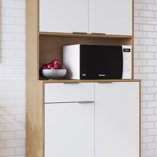 Com 4 portas, 1 gaveta com corrediça metálica e prateleiras internas bem distribuídas, ele oferece espaço ideal para guardar utensílios, produtos de limpeza ou até itens de escritório. Fabricado em MDP resistente, possui dobradiças metálicas, puxadores duráveis e pés que protegem da umidade, perfeito para cozinhas, lavanderias, escritórios ou qualquer ambiente que exija organização com estilo. Acabamento da Prateleira: Pintura UV Escala de Brilho da Prateleira: Fosco Acabamento da Gaveta: Pintura UV Escala de Brilho da Gaveta: Fosco Material do Puxador da Gaveta: Alumínio Acabamento da Porta: Pintura UV Escala de Brilho da Porta: Fosco Material do Puxador da Porta: Alumínio Acabamento dos Pés: Verniz Acompanha Rodapé Decorativo: Não Acompanha Tampo: Não Altura dos Pés: 170 cm Ambiente Principal: Cozinha Balcão Suporta Pia: Não codigo_ean: 7900288206732 Complexidade da Montagem: Média: pode ser montado por mais de uma pessoa e/ou necessite de maior conhecimento para montagem Cor: Nogueira Cor do Produto: Nogueira Cor Interna: Nogueira Escala de Brilho: Fosco Gaveta com Chave: Não Itens Inclusos: 1 Armário, Kit Ferragens e Manual de Montagem Manual de Montagem e Instalação: https://product-hub-prd.madeiramadeira.com.br/691208089/documents/795492d1-0264-45d2-a4d5-de7172ae25ed3118037289517543969647452.pdf Marca: Casamia Material da Corrediça: Metálica Material da Dobradiça/Corrediça da Porta: Metálica Material da Gaveta: MDP Material da Porta: MDP Material da Prateleira: MDP Material dos Pés: Madeira Maciça modular: Não Necessita Montagem: Sim Origem do Produto: Nacional Pés Reguláveis: Não Peso: 45,1 kg Peso Máximo por Gaveta: 8 kg Peso Máximo por Prateleira: 15 kg Possui Espelho: Não Possui Possui Pés: 05 Possui Portas: Sim Possui Prateleiras: Sim Possui Rodízio: Não Produto Montado: Sim Recomendações de Uso, Manutenção e Limpeza: Pano limpo e macio, isento de impurezas, seco ou levemente umedecido com água e sabão neutro, bem torcido até que não saia gotas de água. Não devem ser utilizados abrasivos como palha de aço e objetos cortantes. Para remoção de manchas, utilizar pano levemente umedecido com solução de álcool e água em partes iguais. Fonte: Associação Brasileira da Indústria de Painéis de Madeira - ABIPA Sapatas Niveladoras: Não Sistema de Montagem: Parafusos e Cavilhas Suporta Até (kg): 8 kg Tipo de Corrediça da Gaveta: Simples Tipo de Dobradiça/Corrediça da Porta: Simples Tipo de Madeira Maciça dos Pés: Pinus Tipo de Puxador da Gaveta: Externo Tipo de Puxador da Porta: Externo
