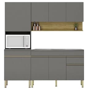 Que tal ter uma cozinha prática, versátil e charmosa? Conheça o Armário de Cozinha 4 Peças Balcão 120cm com Pia Lina09 K02 Gris/Freijó, da Mpozenato.