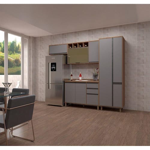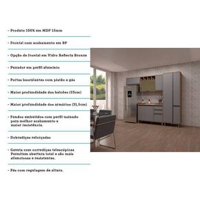 Uma cozinha modulada completa, para deixar seu ambiente super aconchegante e requintado. Composta por 4 peças cuidadosamente pensadas para sua organização. As portas embutidas remetem ao planejado, com acabamento impecável. Os módulos são montados individualmente e permite a instalação da forma que melhor se adeque ao seu espaço. Contém um nicho com espaço para forno micro-ondas e Vidro Reflecta. Para este ambiente utilizamos como proposta 270cm de parede linear.