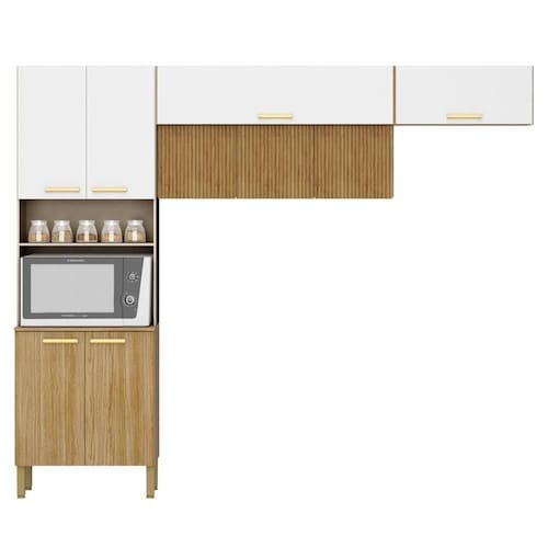 Se você procura por beleza e praticidade para sua casa, conheça a Cozinha Modulada 4 peças 9 Portas Urban K02 Freijó/Supremo, da Mpozenato e surpreenda-se!