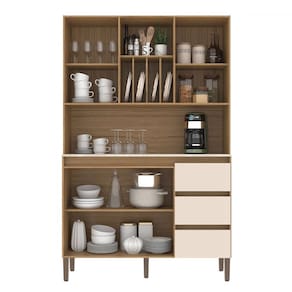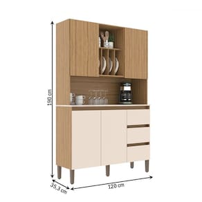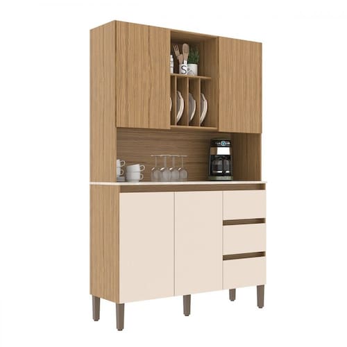 O(a) Armário de Cozinha 4 Portas 3 Gavetas Naturalle/Cristalo/Petra - Decibal é produzido em MDP na escala de brilho Fosco, e possui um grau de dificuldade de montagem: Médio.