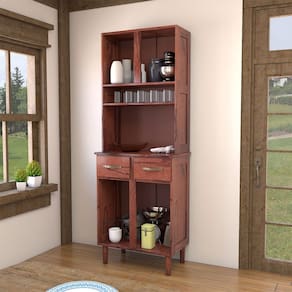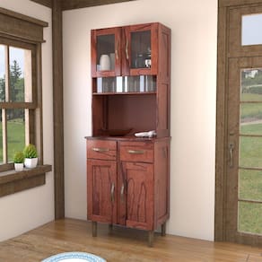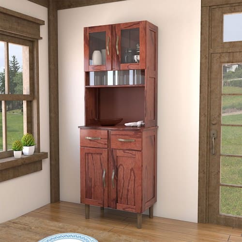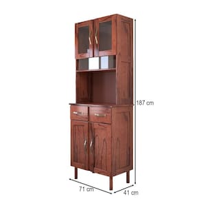 O(a) Armário de Cozinha 4 Portas Rústico Madeira Maciça Mogano - Loja é produzido em Madeira Maciça e Pinus na escala de brilho Alto Brilho, e possui um grau de dificuldade de montagem: Médio.