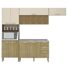 Conteúdo da Embalagem: 1 Armário Aéreo 120cm, 1 Armário Aéreo, 1 Paneleiro, 1 Balcão 120cm, 1 Pia Inox 120cm.