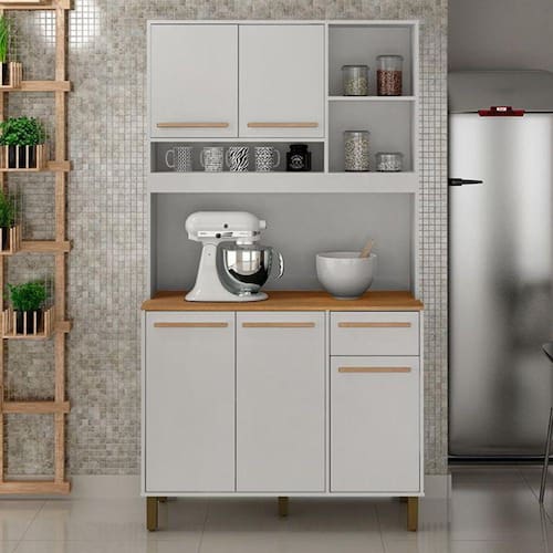 O Armário Ametista é super compacto, moderno e com espaço para guardar e organizar as coisas na sua cozinha.