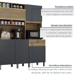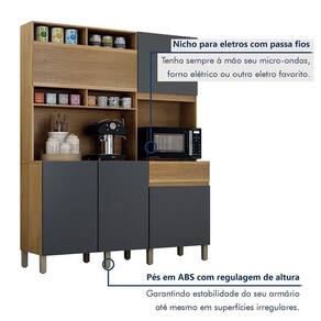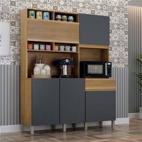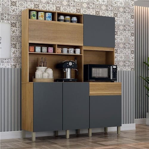 Transforme seu ambiente com praticidade e estilo, com nosso armario de cozinha! Com um paneleiro espacoso e nicho perfeito para micro-ondas, ele organiza tudo de forma inteligente. A gaveta com detalhes ripados traz um toque de elegancia, enquanto os nichos para decoracoes sao ideais para exibir suas canecas favoritas ou deixar os temperos a mao. O acabamento cria um visual clean e moderno, perfeito para cozinhas pequenas ou medias que precisam de um upgrade sem ocupar muito espaco!