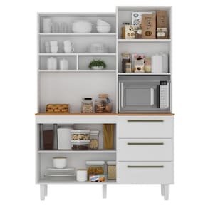 O Kit Absoluto possui design moderno e qualidade única, o móvel ideal para sua cozinha. Possui cinco portas, sendo duas com vidros "Reflecta bronze" que deslizam suavemente sobre trilhos, e outras três portas de abrir, três gavetas com corrediças telescópicas que proporcionam maior abertura e facilidades na utilização. Também conta com três prateleiras internas, excelente espaço para armazenagem de produtos e utensílios, espaço para micro-ondas, e pés com regulagem de altura Acabamento da Prateleira: Pintura UV Escala de Brilho da Prateleira: Fosco Acabamento da Gaveta: Pintura UV Escala de Brilho da Gaveta: Brilhante Material do Puxador da Gaveta: Plástico Acabamento da Porta: Pintura UV Escala de Brilho da Porta: Brilhante Acabamento dos Pés: Polipropileno Acompanha Tampo: Sim Altura dos Pés: 17 cm Ambiente Principal: Cozinha Complexidade da Montagem: Alta: deve ser montado por um montador especializado Cor: Branco Cor do Produto: Branco Cor Interna: Branco Escala de Brilho: Fosco Espessura do Material da Estrutura: 15 mm Espessura do Tampo: 15 mm Gaveta com Chave: Não Informações Complementares: Fabricado com painéis de madeira reflorestada e certificada Itens Inclusos: 1 Armário, jogo de ferragens e manual Linha ou Coleção: Absoluto Manual de Montagem e Instalação: https://product-hub-prd.madeiramadeira.com.br/909017/documents/feab6a6e-6534-4939-adcc-ada61b1f2cad09e48657062208730503manual.pdf Material da Dobradiça/Corrediça da Porta: Metálica Material da Gaveta: MDP Material da Porta: MDP Material da Prateleira: MDP Material do Tampo: MDP Material dos Pés: Polipropileno Necessita Montagem: Sim O Balcão Acompanha Pia: Não Origem do Produto: Nacional Pés Reguláveis: Sim Peso: 73 kg Peso Máximo por Gaveta: 3 kg Peso Máximo por Prateleira: 3 kg Possui Pés: 05 Possui Portas: Sim Possui Prateleiras: Sim Possui recorte para Cooktop: Não Possui Rodízio: Não Possui Vidro: Sim Recomendações de Uso, Manutenção e Limpeza: Limpar com flanela ou pano macio seco, não utilizar produtos abrasivos, desengordurantes, álcool ou qualquer outro produto químico. Não expor o produto diretamente à luz solar e à umidade Sapatas Niveladoras: Não Sistema de Montagem: Parafusos auto atarraxantes, cola, cavilhas, pregos Suporta Até (kg): 45 kg Tamanho Indicado da Pia: 00 Tipo de Corrediça da Gaveta: Metálica Telescópica Tipo de Dobradiça da Porta: 35 mm Tipo de Puxador da Gaveta: Externo Tipo de Puxador da Porta: Externo