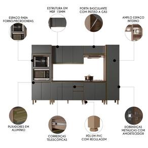 Conheça o Armário de Cozinha 6 Peças Com Tampo Jessy N03 Carvalho/Grafite, da Mpozenato, é a combinação perfeita de funcionalidade e estilo.