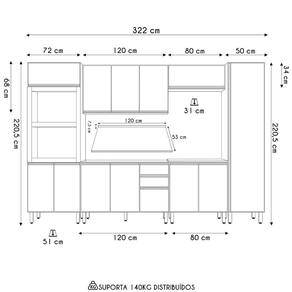 Conteúdo da Embalagem: 1 Balcão 120cm, 1 Balcão 80cm, 1 Armário Aéreo 120cm, 1 Armário Basculante, 1 Paneleiro Torre, 1 Paneleiro 50cm, Tampo 120cm.