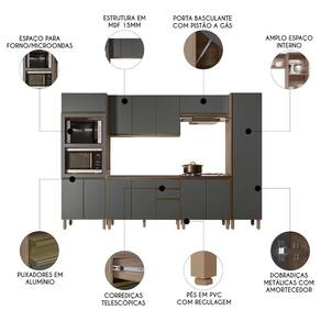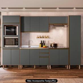 Conteúdo da Embalagem: 1 Balcão 120cm, 1 Balcão 80cm, 1 Armário Aéreo 120cm, 1 Armário Basculante, 1 Paneleiro Torre, 1 Paneleiro 50cm.