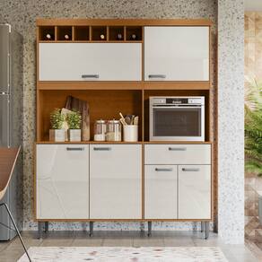 Armário de Cozinha Dakota 6 Portas 1 Gaveta e Adega para 6 Garrafas Jequitibá/Areia - Lukaliam