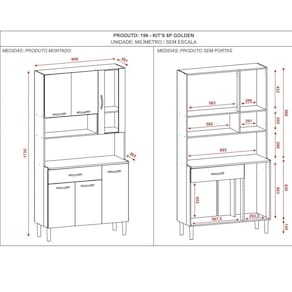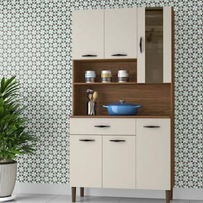 Sua cozinha merece mais espaço e organização. Armário de Cozinha 6 Portas Golden é ideal para ajudar nesta tarefa. Produzido em MDP, madeira reconstituída retirada de reservas manejadas é ecologicamente correto. Com suas seis portas sendo uma das portas com vidro é sem dúvida muito espaço para seus utensílios da cozinha. Conta ainda com uma ampla gaveta. Lembrando que as corrediças e dobradiças são 100% metálicas para um abrir e fechar de portas e gavetas macio e com muita segurança. O espaço interno é bem distribuído com prateleiras. Puxadores ergonômicos em plástico resistente, bem como pés fixos que dão excelente estabilidade ao produto. O acabamento em pintura com cores modernas deixam sua cozinha ainda mais bonita. Conheça a Cozinha Compacta 6P Golden! Acabamento da Gaveta: Pintura UV Acabamento da Porta: Pintura UV Acabamento da Prateleira: Pintura UV Acabamento dos Pés: Polipropileno Altura dos Pés: 14.5 Ambiente Principal: Cozinha Complexidade da Montagem: Média: pode ser montado por mais de uma pessoa e/ou necessite de maior conhecimento para montagem Cor: Nogueira/Off White Cor do Produto: Nogueira/Off White Cor Interna: Nogueira Escala de Brilho: Fosco Escala de Brilho da Gaveta: Fosco Escala de Brilho da Porta: Fosco Escala de Brilho da Prateleira: Fosco Gaveta com Chave: Não Itens Inclusos: 1 Armário, Kit Ferragens e Manual de Montagem Manual de Montagem e Instalação: https://cdn2.madeiramadeira.com.br/atributo/kits-parana/1092587-196-kits-06-portas-golden.pdf Material da Dobradiça/Corrediça da Porta: Metálica Material da Gaveta: MDP Material da Porta: MDP Material da Prateleira: MDP Material do Puxador da Gaveta: Poliestireno Material do Puxador da Porta: Poliestireno Material dos Pés: Polipropileno Material Principal: MDP Necessita Montagem: Sim Origem do Produto: Nacional Pés Reguláveis: Não Peso: 33.91 Peso Máximo por Gaveta: 4 Peso Máximo por Prateleira: 8 Possui Espelho: Não Possui Possui Pés: 04 Possui Portas: 06 Possui Prateleiras: 02 Possui Rodízio: Não Recomendações de Uso, Manutenção e Limpeza: Limpeza com pano seco ou levemente umedecidos sem utilizar abrasivos. Respeitar a indicação de peso suportado constante do esquema de montagem. Evitar mover o produto com utensílios dentro. Sapatas Niveladoras: Não Sistema de Montagem: Cavilhas, pregos e parafusos Suporta Até (kg): 45 Tipo de Corrediça da Gaveta: Simples Tipo de Dobradiça/Corrediça da Porta: Simples Tipo de Porta: Bater Tipo de Puxador da Gaveta: Externo Tipo de Puxador da Porta: Externo