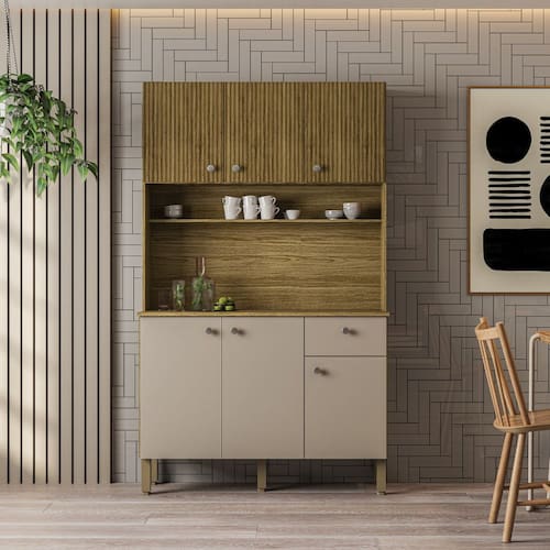 6 portas e 1 gaveta: Espaço otimizado para guardar utensílios, mantimentos e outros itens essenciais do dia a dia.