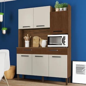 Kit's Modena irá se tornar o charme de sua cozinha, seu design diferenciado dispõe de um nicho para decoração superior podendo ser utilizado para vasos, flores e afins. Tem a disposição de um grande espaço para eletrodomésticos podendo acomodar um micro-ondas, sua matéria prima valoriza o meio ambiente sendo feita de madeira de reflorestamento. Com acabamento em pintura com secagem em luzes UV.