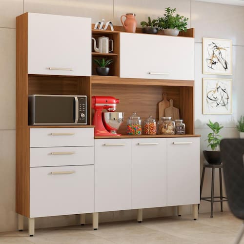 Armário de Cozinha 6 Portas 2 Gavetas Select Demobile Amêndoa/Branco - Marrom