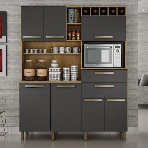 Espaço para organizar tudo o que você precisa e um design pensado para deixar o seu cômodo de chef mais bonito: essas vantagens você só encontra no Armário Monte Rey! Unindo compartimentos internos essenciais, ela recebe bem os utensílios, panelas, louças e embalagens de alimentos, além de acomodar também aqueles eletrodomésticos indispensáveis para um dia a dia mais prático. Enquanto isso, por fora, a estrutura tradicional, que se encaixa muito bem no ambiente, carrega uma coloração sóbria que é reforçada pelos puxadores discretos, perfeitos para quem quer acrescentar charme à decoração sem deixar de lado a elegância de uma peça versátil. Daí é só comprar os móveis e acessórios que vão complementar essa parte importante da casa e pronto! Já pode curtir ótimas refeições com a família ;) Acabamento da Gaveta: Pintura Acabamento da Porta: Pintura Acabamento dos Pés: Pintura Altura dos Pés: 15 cm Ambiente Principal: Cozinha Complexidade da Montagem: Média: pode ser montado por mais de uma pessoa e/ou necessite de maior conhecimento para montagem Cor: Cinamomo/Grafite Cor do Produto: Cinamomo/Grafite Escala de Brilho: Fosco Escala de Brilho da Gaveta: Fosco Escala de Brilho da Porta: Fosco Gaveta com Chave: Não Itens Inclusos: 1 Armário, Manual de Montagem e Kit Ferragens Manual de Montagem e Instalação: https://cdn2.madeiramadeira.com.br/atributo/valdemoveis/727959-manual-de-montagem-arm-rio-monte-rey.pdf Material da Gaveta: MDP Material da Porta: MDP Material do Puxador da Gaveta: Poliestireno Material do Puxador da Porta: Poliestireno Material dos Pés: Polipropileno Material Principal: MDP Necessita Montagem: Sim Origem do Produto: Nacional Pés Reguláveis: Sim Peso: 86,5 kg Peso Máximo por Gaveta: 5 kg Peso Máximo por Prateleira: kg Possui Espelho: Não Possui Possui Pés: 08 Possui Portas: 07 Possui Prateleiras: Não Possui Rodízio: Não Recomendações de Uso, Manutenção e Limpeza: Recomendamos que a limpeza seja feita apenas com pano umedecido. Sapatas Niveladoras: Sim Sistema de Montagem: Parafusos e Cavilhas Suporta Até (kg): 70 kg Tipo de Corrediça da Gaveta: Telescópica Tipo de Dobradiça/Corrediça da Porta: Metálica Tipo de Porta: Bater Tipo de Puxador da Gaveta: Externo Tipo de Puxador da Porta: Externo