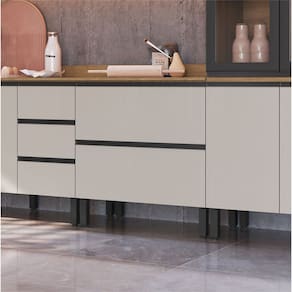 As novas cozinhas Quiditá possuem design contemporâneo. São elaboradas a partir dos projetos da nossa marca de cozinhas planejadas, Almadra. Neste formato oferecemos os módulos permitindo composições variadas para as suas necessidades. Armários com muitas facilidades, que podem ser montados do lado direito ou lado esquerdo.