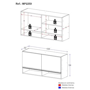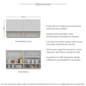 Conteúdo da Embalagem: 1 (um) Armário Aéreo Kit Ferragem Manual de Montagem