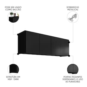 Armário de Cozinha Aéreo 118cm 4 Portas Monna Preto Z34 - Mpozenato