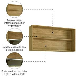O Armário Aéreo Duplo de Cozinha Ametista é ideal para quem procura praticidade em seu dia a dia! Pode ser utilizado sozinho ou como complemento da cozinha modelo Ametista, pode ser utilizado também em lavanderias, cozinhas ou áreas gourmets. Possui 2 portas basculante com pistão a gás, uma delas com vidro reflecta e outra com detalhe ripado com design moderno, prateleiras bem divididas e amplo espaço interno para acomodar copos, xícaras e demais utensílios domésticos. O armário aéreo irá deixar seu ambiente ainda mais moderno e organizado!