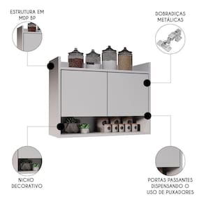 Além de otimizar a circulação e aproveitar o espaço superior da parede, esse armário aéreo é perfeito para manter as louças, utensílios de cozinha e demais objetos sempre organizados e com facilidade de acesso. Mais que funcionalidade, esse armário 2 portas também agrega um toque de elegância, já que conta com um nicho que pode ser aproveitado para dispor decorações. Ah, e essa peça combina com outros móveis, como balcão ou aparador, pois a sua tonalidade sóbria harmoniza facilmente com outros estilos e, assim, você deixa o ambiente mais completo. Demais, não é mesmo?!