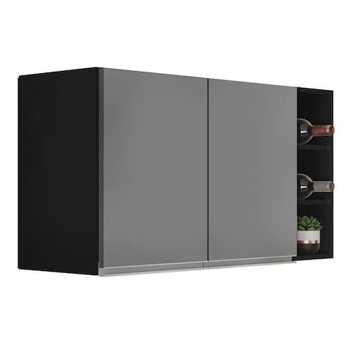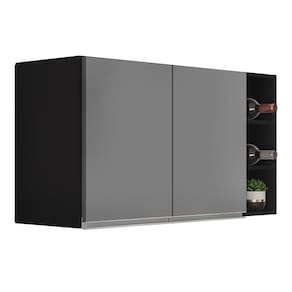 Se você está procurando um armário de cozinha que seja prático, funcional e bonito, o Armário de Cozinha Aéreo Califórnia 80cm e Nicho Garrafeiro 20cm Riad Preto/Cinza, da Lumil é a escolha ideal. O Armário Aéreo possui duas portas convencionais com puxadores de alumínio, que garantem um toque de sofisticação e durabilidade. Além disso, as portas contam com dobradiças metálicas, que proporcionam uma abertura e fechamento suave e silencioso. O Armário Duas Portas possui uma prateleira interna, que permite organizar melhor os seus utensílios e mantimentos, aproveitando melhor o espaço. Ele acompanha também o Nicho Garrafeiro Riad, que pode ser fixado na lateral esquerda ou direita do armário aéreo e acomoda até três garrafas de vinho ou outras bebidas, deixando-as ao alcance das mãos e dando um charme especial à sua cozinha e combina com diversos estilos de decoração. Ambos são fabricados em MDP, que confere maior estabilidade e durabilidade ao móvel e possui pintura BP, que protege contra riscos, manchas e umidade, além de facilitar a limpeza. Adicione em seu carrinho de compras para uma cozinha mais bonita e organizada! ESPECIFICAÇÕESDimensões dos ProdutosLargura Total: 100,5 cm.Altura: 54 cm.Profundidade: 29 cm.Peso: 21 Kg.Outras medidasArmário Aéreo: 80,5 x 54 x 29 cm.Nicho: 20 x 54 x 27 cm.Características do Produto Material da Estrutura: MDP 15 mm.Acabamento: Pintura BP.Peso Suportado: 25 kg distribuídos.Escala de Brilho: Fosco.Possui prateleiras: Sim.Material da Prateleira: MDP.Quantidade de Prateleiras: 1 Prateleira.Possui Portas: Sim.Material da Porta: MDP.Quantidade de Portas: 2 Portas.Tipo de Porta: Convencional.Tipo de dobradiças: Metálicas.Possui Gavetas: Não.Possui Nichos: Sim.Possui Puxador: Sim.Material do Puxador: Alumínio.Diferenciais: - Design moderno.- Dobradiças metálicas.- Puxadores em Alumínio.Sistema de Montagem: Cavilhas/Parafs.Manual de Montagem: Sim.Complexidade da Montagem: Média.Volumes: 3 Volumes.Conteúdo da Embalagem: 1 Armário Aéreo, 1 Nicho.Garantia do Fabricante: 90 dias contra defeito de fabricação.Montagem: Recomendamos que seja feita por um profissional.Recomendação de Limpeza: Utilize pano úmido.Observações importantes:- Produto para residencial em ambiente interno, não devendo ficar exposto diretamente ao sol, calor e umidades excessivas.- Pode haver alguma diferença de tonalidade entre a imagem e o produto real, por conta do tratamento de imagens e a calibração de cores do seu monitor.- As imagens são meramente ilustrativas, não acompanham objetos de decoração e eletrônicos.- Ao receber a mercadoria, o cliente deve verificar as condições da embalagem, caso haja alguma não assine o comprovante de recebimento.- Montagem, desmontagem e outras instalações serão de responsabilidade do cliente. Não nos responsabilizamos, no ato da , por subir escadas/elevadores ou pelo transporte por guincho em apartamentos. Eventuais despesas são de responsabilidade do comprador. - Confira as dimensões do produto e certifique-se de que passará normalmente por supostos elevadores, portas, escadas e/ou corredores de sua residência.