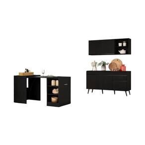 Produzido em MDP com acabamento acetinado (20% de brilho), esse conjunto alia resistência e praticidade. Composto por módulos individuais que podem ser montados conforme a disposição do seu ambiente. Com 5 portas, 1 gaveta equipada com corrediças metálicas para maior suavidade no manuseio, nichos funcionais e pés no estilo retrô em polipropileno para maior estabilidade, ela proporciona uma organização eficiente de utensílios de cozinha e destaca o visual do seu ambiente. O balcão possui tampo de 15mm removível e é compatível com pia de 150cm.