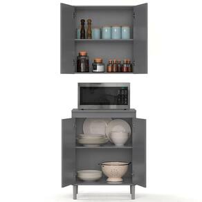 Deixe a sua cozinha ainda mais funcional e elegante com o Armário de Cozinha Aéreo e Balcão com Tampo Italy Cinza - EJ Móveis, perfeito para completar a decoração e organização do seu espaço.