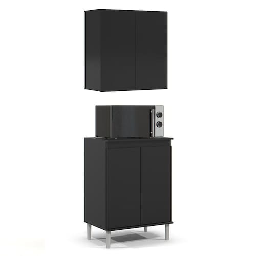 Deixe a sua cozinha ainda mais funcional e elegante com o Armário de Cozinha Aéreo e Balcão com Tampo Italy Preto - EJ Móveis, perfeito para completar a decoração e organização do seu espaço.