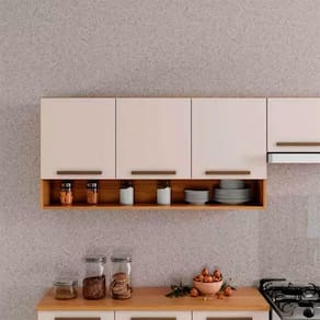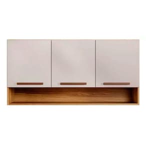 Lindo, pratico e funcional, o armario aereo com acabamento e excelente espaco interno para voce utilizar na cozinha, areas ou onde mais sua imaginacao mandar, gracas a versatilidade deste produto. Acabamento em pintura UV, puxadores de madeira e nicho. Vai muito bem em diversos ambientes.