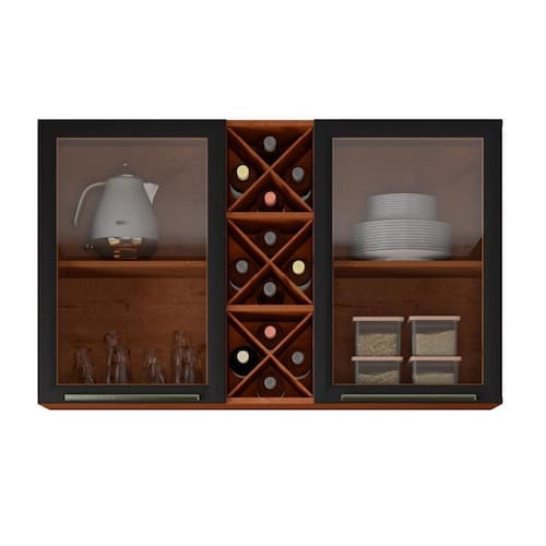 Armário De Cozinha Aéreo Triplo 1,20M C/ Vidro E Adega Preto