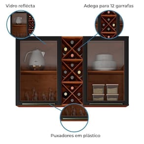 Armário De Cozinha Aéreo Triplo 1,20m Com Vidro Reflecta E Adega Favorita Preto / Nature Preto Naturale