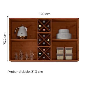 O Armário Aéreo Triplo 1,20m Com Adega Favorita, é um excelente produto! Ele possui duas sofisticadas portas de abrir com vidro reflecta. Armário com prateleiras e adega que irão manter a sua cozinha ou área gourmet mais moderna e organizada. É o armário ideal para aproveitar os espaços, guardar suas bebidas, organizar os utensílios de sua cozinha. Aproveite e utilize outros produtos da linha "Favorita" para renovar sua cozinha mantendo o design!/ DIMENSÕES: A: 73,2 cm L: 120 cm P: 31,3 cm /NOME: Armário De Cozinha Aéreo Triplo 1,20m Com vidro Reflecta Com Adega Favorita Preto / Nature/ MARCA: Zanzini / COR: Preto / MATERIAL: MDP 15 mm / ACABAMENTO: UV-Verniz/Texturizado UV-Verniz / TIPO DE ACABAMENTO: Fosco / PORTAS: 2 / TIPO DE PORTA: Com dobradiças / PRATELEIRA: 2 / PUXADORES: Plástico / VIDRO: Reflécta / DOBRADIÇAS: Metálicas 35 mm / GARRAFEIRO: Comporta 12 garrafas / INFORMAÇÕES COMPLEMENTARES: Fabricado com painéis de madeira reflorestada e certificada / SISTEMA DE MONTAGEM: Parafusos auto atarraxantes, cavilhas, pregos / RECOMENDAÇÕES DE LIMPEZA: Limpar com flanela ou pano macio seco, não utilizar produtos abrasivos, desengordurantes, álcool ou qualquer outro produto químico. Não expor o produto diretamente à luz solar e à umidade / GARANTIA: 3 meses contra defeito de fabricação / PESO: 30kg / Montagem não inclusa. Entregamos até a porta de entrada da casa do cliente ou até a portaria do condomínio. NOME: : Armário De Cozinha Aéreo Triplo 1,20m Com vidro Reflecta Com Adega Favorita Preto / Nature | MARCA: : Zanzini | DIMENSÕES:: [A]73,2 cm [L] 120 cm [P] 31,3 cm | MATERIAL:: MDP 15 mm | ACABAMENTO: : UV-Verniz/Texturizado UV-Verniz | TIPO DE ACABAMENTO: : Fosco | PORTAS: : 2 | TIPO DE PORTA: : Com dobradiças | PRATELEIRA: : 2 | PUXADORES: : Plástico | VIDRO: : Reflécta | DOBRADIÇAS: : Metálicas 35 mm | GARRAFEIRO: : Comporta 12 garrafas | INFORMAÇÕES COMPLEMENTARES:: Fabricado com painéis de madeira reflorestada e certificada | SISTEMA DE MONTAGEM:: Parafusos auto atarraxantes, cavilhas, pregos | RECOMENDAÇÕES DE LIMPEZA: : Limpar com flanela ou pano macio seco, não utilizar produtos abrasivos, desengordurantes, álcool ou qualquer outro produto químico. Não expor o produto diretamente à luz solar e à umidade | GARANTIA: : 3 meses contra defeito de fabricação | PESO: : 30kg | OBS:: Montagem não inclusa. Entregamos até a porta de entrada da casa do cliente ou até a portaria do condomínio. | PRODUTO: Armário De Cozinha Cor: Preto Naturale