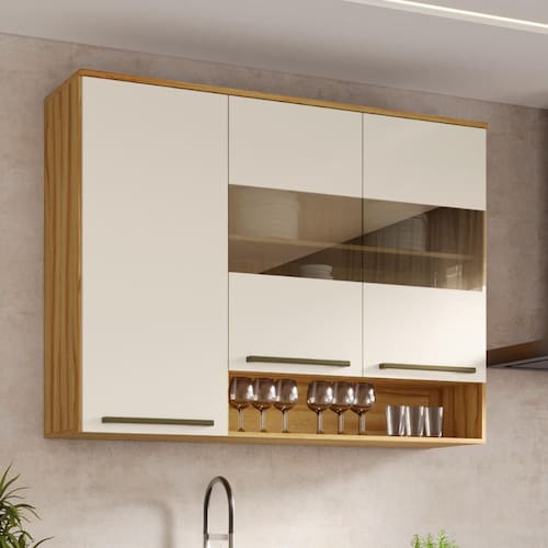 O Armário Aéreo Triplo de Cozinha 3 Portas Com Nicho da linha Nápoli Prime, favorece a funcionalidade da sua cozinha, simplificando a rotina na sua área gourmet, onde você consegue trazer uma decoração mais dinâmica para a sua casa, oferecendo ainda mais espaço de armazenamento para os itens da sua cozinha. Completando a linha Nápoli Prime, conheça o Balcão, Paneleiro Simples, Paneleiro Duplo e Aéreo Geladeira com Adega, que irão proporcionar uma cozinha ainda mais completa. O Aéreo Triplo Nápoli Prime é um produto 100% MDF, o seu acabamento é em pintura U.V. e fita de bordo FF. Possui puxador em ABS, as suas portas são de MDF com vidro reflecta e Nicho.