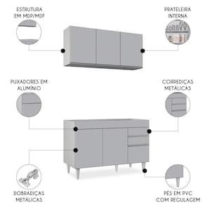 Confira agora o Armário de Cozinha Aéreo Virgínia e Balcão Para Pia 120cm Michigan Cinza Claro imperdível que a Lumil preparou e tenha a Cozinha Moderna e funcional que sempre quis!!