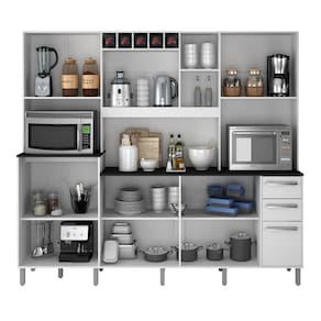 O Armario de Cozinha Agata e uma cozinha dos sonhos, para quem busca modernidade, espaco e tamanho, para facilitar o dia a dia. Com design moderno e um otimo acabamento, ela se destaca por ser espacosa e funcional, levando em conta o charme e o requinte dos mais novos lancamentos do mercado.