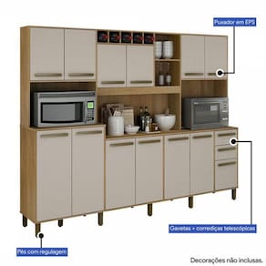 Caracteristicas: Estrutura em MDP 6 prateleiras 13 portas 2 gavetas Pes em EPS regulaveis Peso: 122 Kg