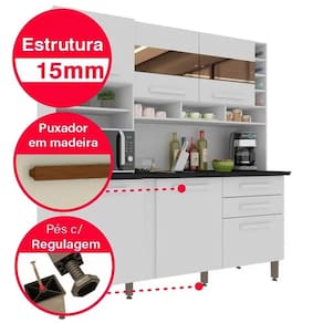 Preparar receitas especiais para a família e os amigos fica ainda melhor quando o espaço está organizado, né? Conte com o Armário de Cozinha Alexia 6 Portas 2 Gavetas Imop para levar ainda mais praticidade à sua rotina. Espaçosa, ela oferece portas e gavetas para você acomodar potes de mantimentos, panelas, pratos, talheres, enfim, todos os itens que utiliza para cozinhar diariamente – além disso, também pode receber eletrodoméstico ou servir de apoio para picar alimentos.