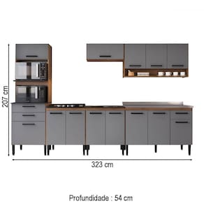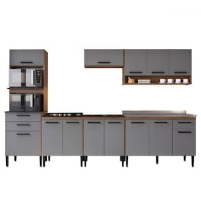 O(a) Armário de Cozinha Amanda 13 Portas 3 Gaveta Freijó/Cinza - Pnr Móveis é produzido em MDP na escala de brilho Fosco, e possui um grau de dificuldade de montagem: Médio.