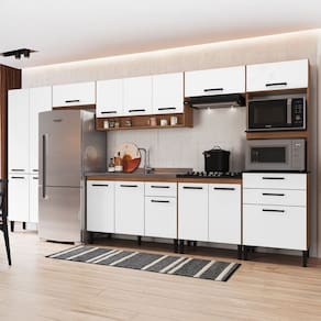 O(a) Armário de Cozinha Amanda 16 Portas 3 Gaveta Freijó/Branco - Pnr Móveis é produzido em MDP na escala de brilho Fosco, e possui um grau de dificuldade de montagem: Médio.